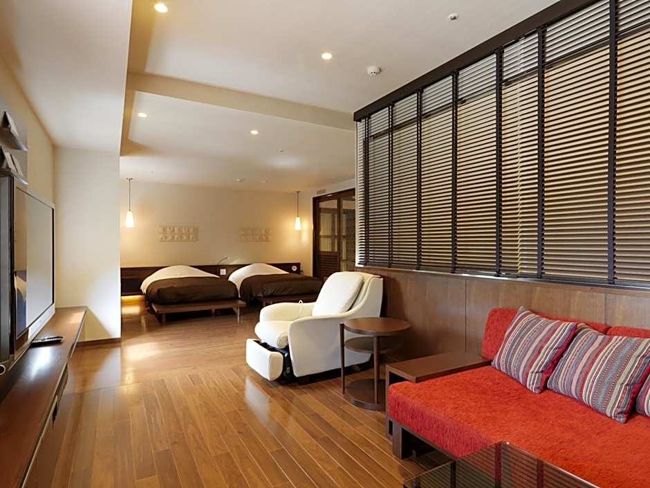 Offering free toiletries, this quadruple room includes a private bathroom with a shower, a bidet and a hairdryer. The spacious air-conditioned quadruple room offers a flat-screen TV, tatami, a tea and coffee maker, a seating area as well as mountain views. The unit has 2 beds and 2 futons.